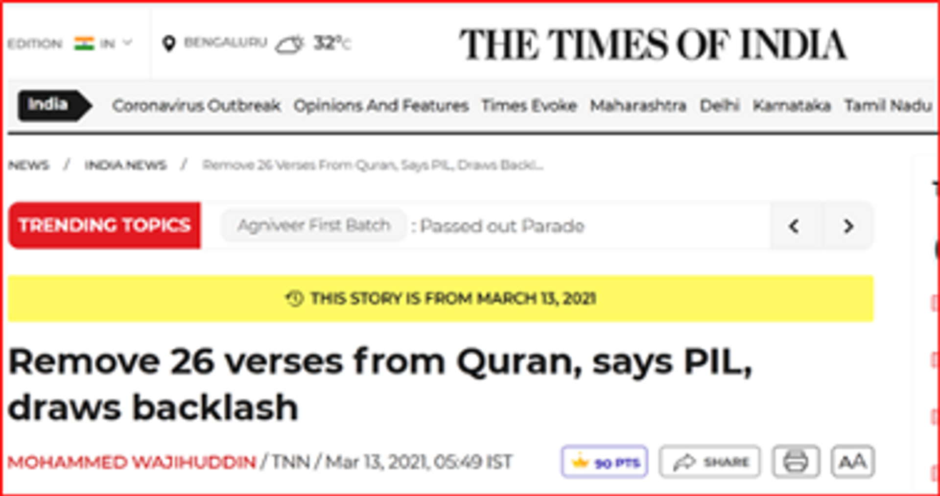 The latest among these was the verdict on Md Waseem Rizvi's PIL in the Indian Supreme Court (WP 401/2021) for the removal of 26 hateful verses of Quran. SC of India dismissed the application calling it “absolutely frivolous” owing to the technicalities in the petition because he didn’t have a highly skilled or renowned advocate arguing the case. Otherwise, how on Earth can the SC overlook those verses of Quran as violating fundamental rights?