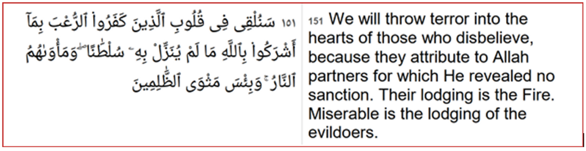 Chapter 3 (Family of Imran), Verse 151 is discriminatory, hateful, bigoted and also threatens the right to life of believers of religions/faiths other than Islam.