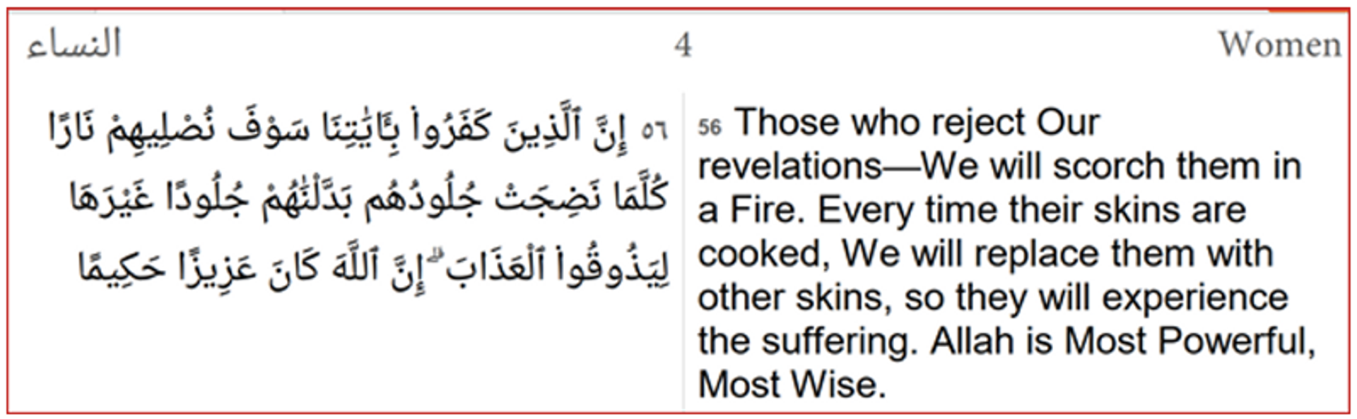 Chapter 4 (The Woman) Verse 56 is also hateful, intolerant, bigoted and threatens life with the worst forms of violence.
